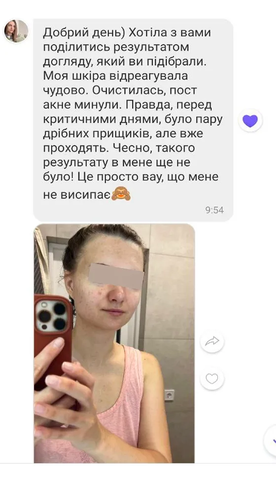 93 % клієнтів відмічають покращення стану шкіри після консультації і схеми догляду.